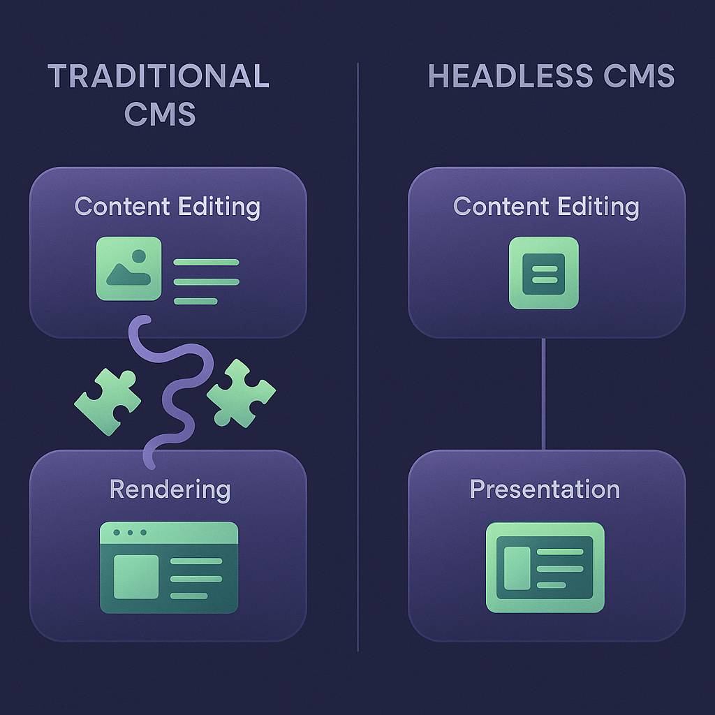 With WordPress or Drupal, the system tightly couples content editing, storage and rendering. A headless CMS drops that coupling—content editors work in a streamlined interface while developers control presentation separately, preventing plugin conflicts or performance bottlenecks.