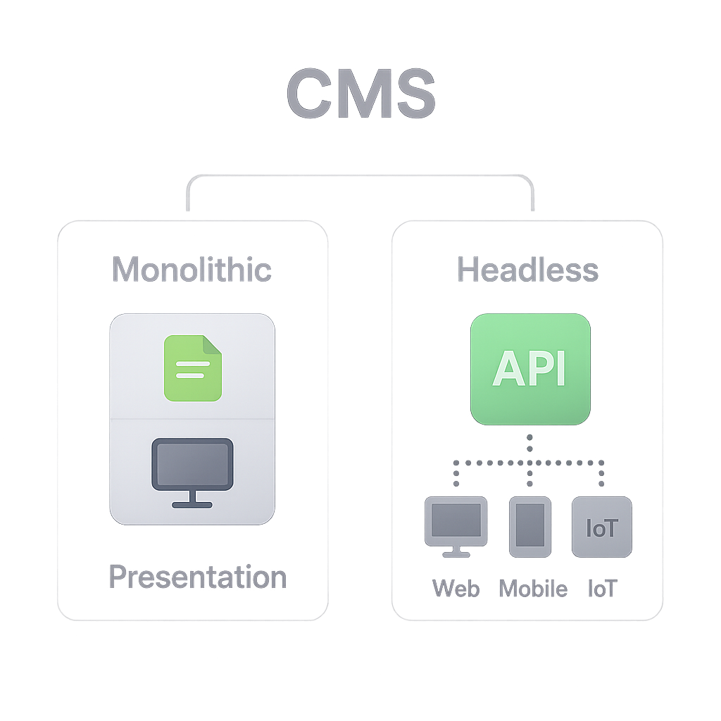 A content management system (CMS) can be either monolithic—where content and presentation are tightly coupled—or headless—where content is delivered via APIs to any front end. This API-first approach decouples content from its rendering layer, enabling greater flexibility in delivering consistent experiences across web, mobile and other digital channels.